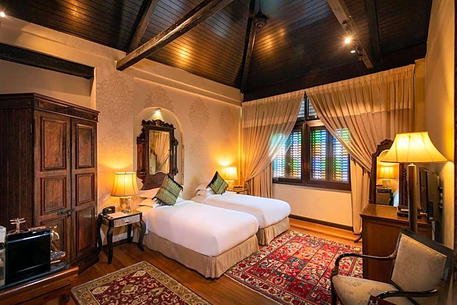 This duplex suite features a separate seating area, an private bathroom and a galleried bedroom, which is accessible via a handmade wooden staircase.